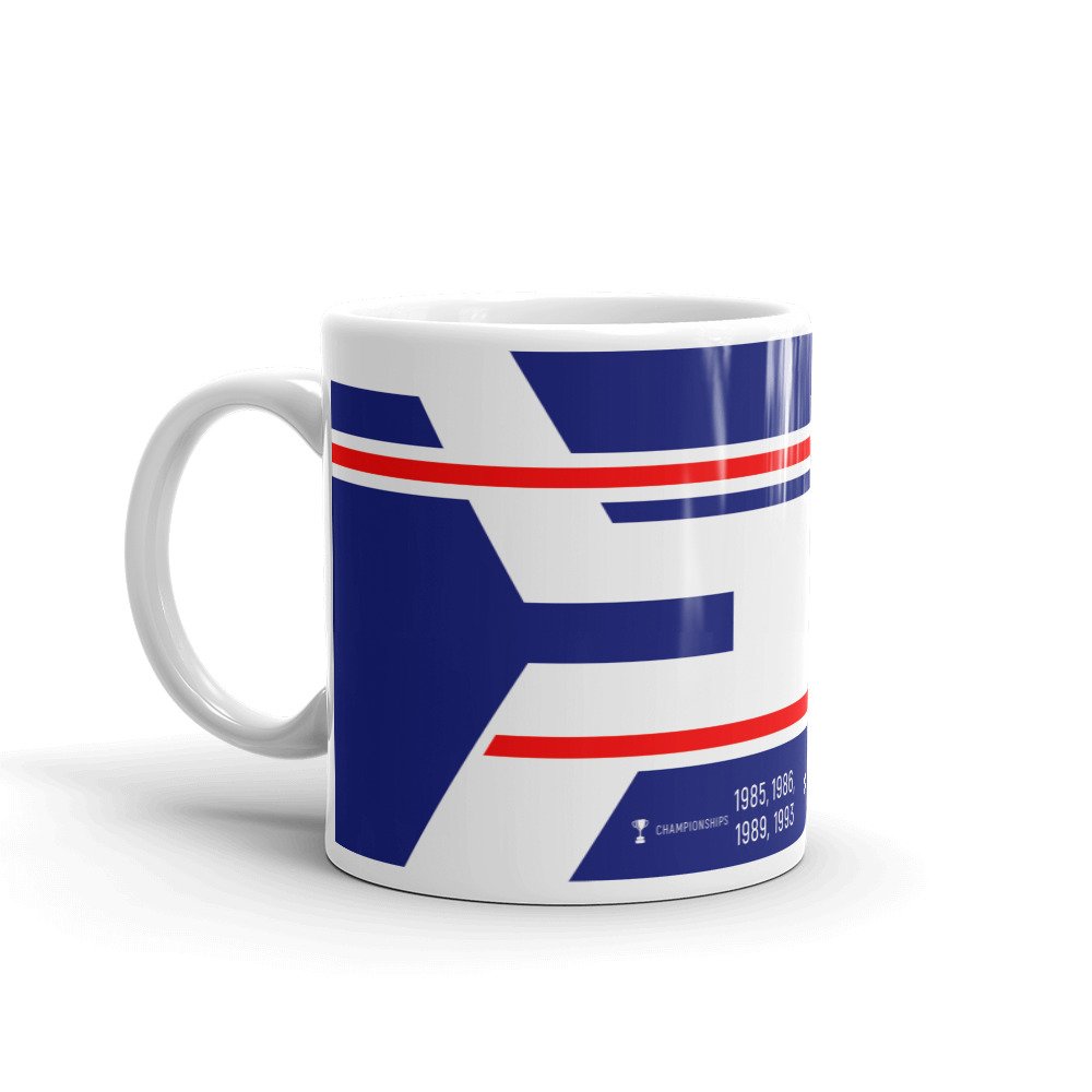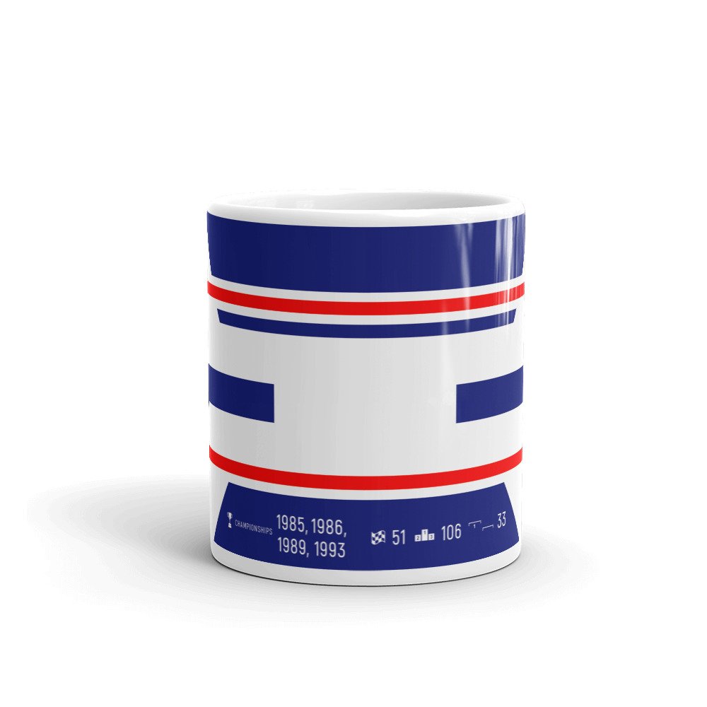 Our exclusively designed mug in the style of Alain Prost’s helmet colours.