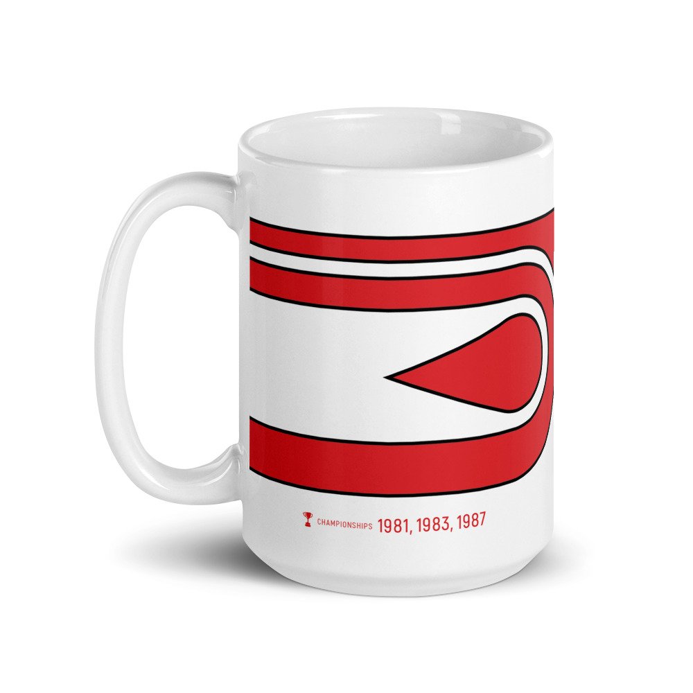 Our exclusively designed mug in the style of Nelson Piquet’s helmet colours.