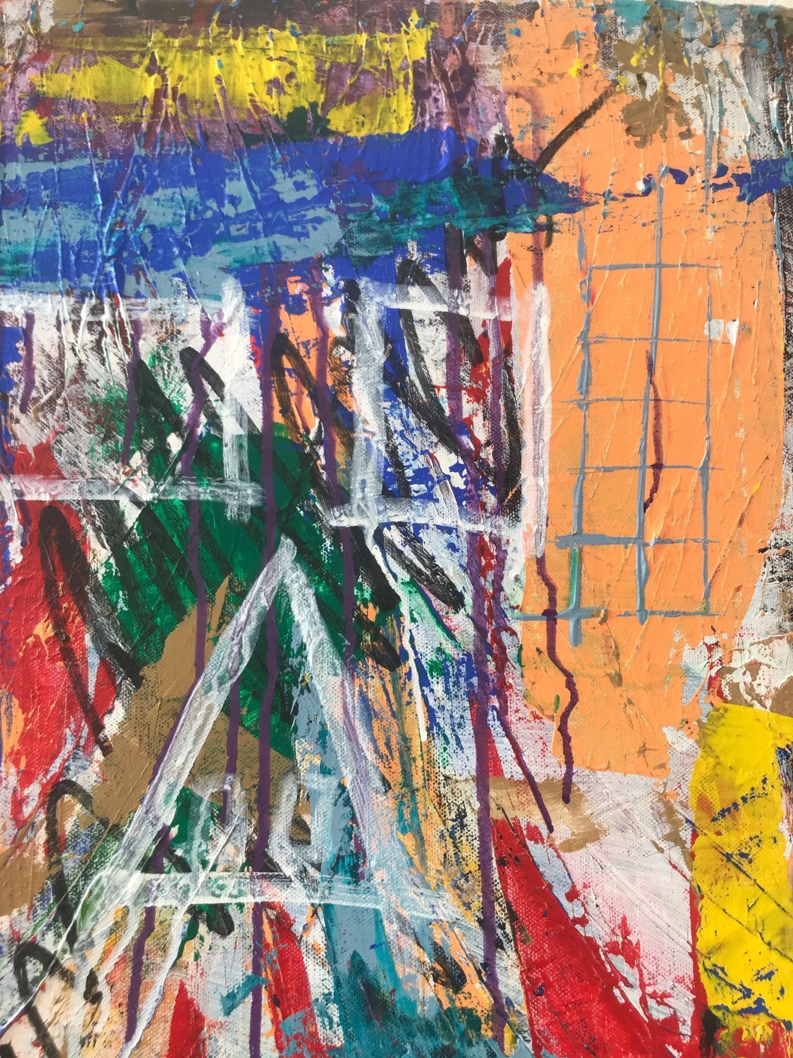Sweet dreams my fruity friend. As busy, active and aggressive as it looks, this was mostly painted while Simon and Garfunkel’s Sounds of Silence played loudly in the background.
